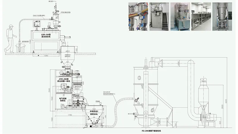 Линия разработки рецептур: смеситель для влажного материала – экструзия/сферионизация – сушка в псевдоожиженном слое – просеивание – фасовка